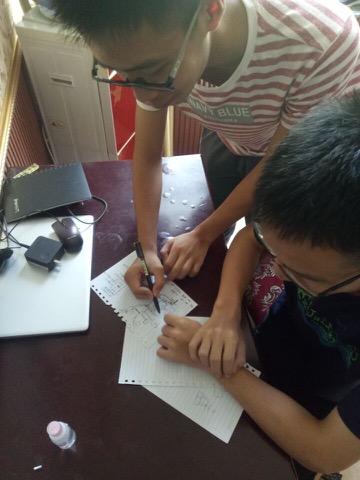 “矿世崎源”暑期社会实践调研团于8月16日观察建筑分布后绘制地图。