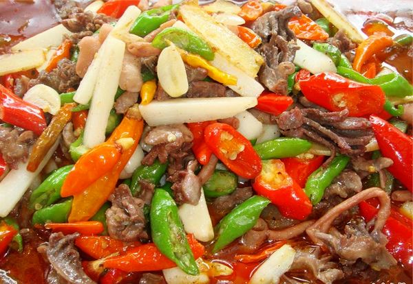 早上八点,成员们来到黔江区南海城一家名为金毛功夫面的小店,向老板点了绿豆粉,据悉,绿豆粉是土家少数民族的美食,自古以来被当地人称为“养生美食粉”。土家绿豆粉主要是由绿豆经精细加工制成。绿豆是夏令饮食中的上品,它有更高的营养价值,又名青小豆,因其颜色青绿而得名,在我国已有两千余年的栽培史。由于它营养丰富,用途较多,李时珍称其为“菜中佳品”。濯水绿豆粉是重庆市非物质文化遗产保护项目。随后,店家呈上绿豆粉,成员们均觉得很美味。晚七点,成员们来到太平岗土家特色第一家,点了黔江鸡杂,成员们从店家了解到黔江鸡杂运用土家烹饪方法,以鸡肠、鸡肝、鸡心等鸡内脏为原料,并把鸡肉切成薄片,辅以土豆块、尖头泡椒、鲜葱等烹制而成,口味麻辣兼备,色鲜味美,醇香可口。菜煮熟后,店家呈上鸡杂,鸡杂煮熟后,用文火边煮边吃,可添加白菜、豆芽、冬瓜、青菜等素菜,成员们对此赞不绝口。