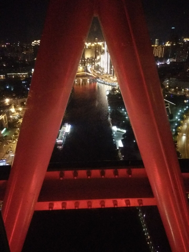 晚上九点三十分,队员们到达了天津市红桥区,来到了海河边参观亚洲唯一建在桥上的摩天轮——天津之眼。队员们询问工作人员和网上调查得知,摩天轮直径为110米,轮外装挂48个360度透明座舱,每个座舱可乘坐8个人,可同时供384个人观光。摩天轮旋转一周所需时间为28分钟,到达最高处时,周边景色一览无余,甚至能看到方圆40公里以内的景致,故被誉为“天津之眼”。在经历了将近两个小时的排队后,队员们顺利的买到了观光票。队员们在摩天轮里在城市高点俯瞰还和风景,灯光映衬下海河之水缓缓流淌,久其巧夺天工和奇思妙想确实是当之无愧的天津地标性建筑。
