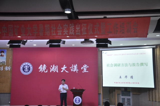 晚上七点整,讲座准时开始。王华清主任首先以挑战杯为切入点,然后分别从“主题新颖”、“功课备足”、“调查深入”、“分析全面”和“报告精美”五个方面用生动诙谐的语言进行了详细深入的讲解。王主任向大家推荐了“国家战略”“时代热点”“社会顽疾”和民间疾苦”四类主题并给大家分析了它们的可行性与优劣势。在准备方面,王主任希望大家可以主题明确,广泛的阅读相关文献,仔细的进行规划,精细的设计流程,不要纸上谈兵而要未雨绸缪。在向同学们着重强调了调查过程中的安全问题的同时,王主任也提醒同学们在调查过程中要礼貌谦让,言语得体,善于追询,勤获素材,不要走马观花而要促膝长谈。在分析方面,要信息精准,工具适当,勤于思辨,切忌繁杂,不要玩数字游戏,应该凭借综合实力来完成调查报告。在最后完成报告时要有自己的真知灼见,而非无病呻吟,报告中最好要标题醒目,逻辑严谨,言辞优美,规范写作。最后,王主任祝大家暑期实践活动都能够取得成功。