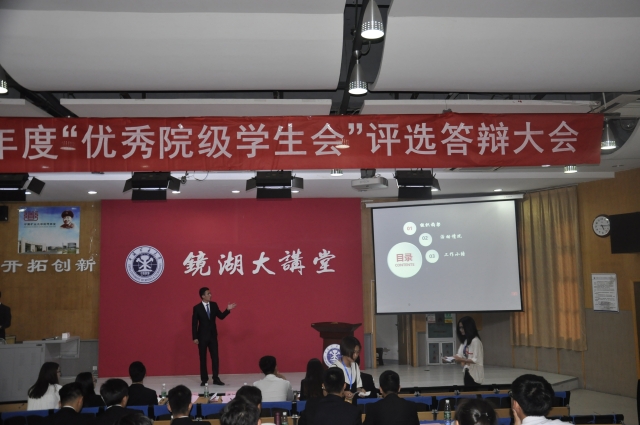 学生会在镜湖大讲堂进行年度评优答辩大会,并由校学生会各主席和各天美传媒