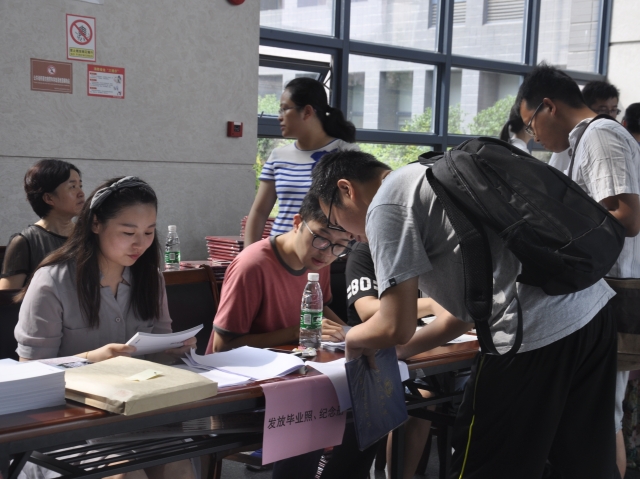 2017届毕业生离校手续办理联合办公的流程共有七项,包括学生证注销,党、团转组织关系,领取报到证,领取研究生毕业证、学位证等。各环节所负责部门采用流水作业形式,相互配合,方便、及时、准确地为毕业生办理各项离校手续,耐心地为毕业生讲解手续办理过程中的不解问题,以保证高效性和准确性。现场秩序井然,各环节工作有条不紊地进行。