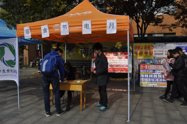 生活部的成员们拿着宣传单,细心给路过的人们讲解活动细节,鼓励大家积极报名参加,并现场填写宿舍信息。在鼓励参与的同时,生活部的同学们还提供了一些节电小常识,呼吁大家从校园点滴做起,养成节电的习惯,为保护环境尽自己的一份力。