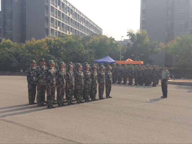 尽管天气灼热难耐,温度居高不下,但同学们并没有消极对待,而是反复练习所学的稍息与立正,跨立与立正,报数,停止间转法,齐步走等训练科目。与此同时,教官将每一项训练科目的要点进行重申,并一一指出同学们所存在问题,进行纠正。同学们细心地听着教官的讲解,仔细地做着每一个动作,仿佛已置身于真正会操表演中。演练评比中,同学们整齐划一的动作、铿锵有力的步伐和团结响亮的口号,令周围的老师同学不禁为之震撼。