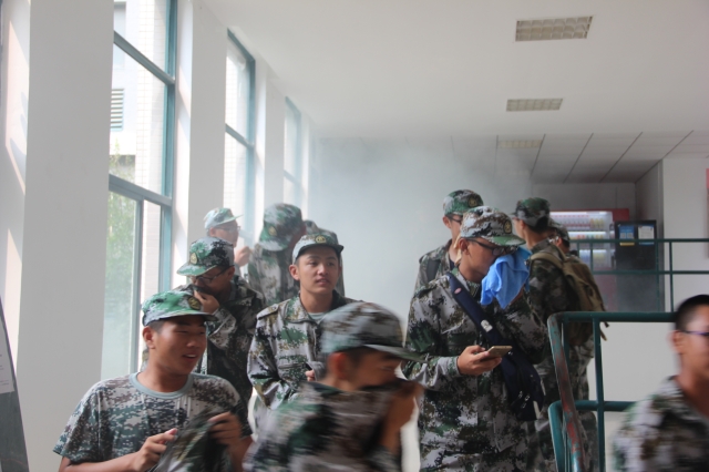在警报声响起后,演习正式开始。同学们按照事先老师的要求用湿毛巾捂住口鼻,有组织地穿过层层烟雾从宿舍里跑出来。其中,有被浓浓烟雾阻挡视线以致落在后面的学生也在同学们的帮助下走出宿舍。不多时,全体16级新生逃出宿舍,完成演习。演习结束后,陶冰冰老师将同学们召集在一起,向同学们讲解了此次演习的重要性并一一指出新生们在演习中表现的优缺点,提醒同学们要重视消防安全。