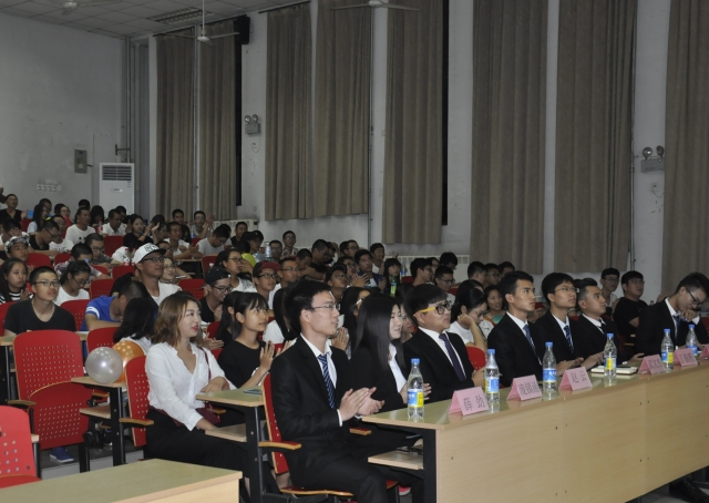 组织部张悦和2016级新生由亮担任大会主持。一番开场热身过后,团委学生会主席团上台与新生见面。主席们正装出席,现场掌声不断。接下来是各部门宣讲环节。团委学生会二十三个部门负责人悉数登场,详细介绍了各部门的职能、工作内容及历届活动成果情况。其中新闻宣传中心九位部长西装革履一字排开,展现出部门“高大上”的气质。两位14级女生一袭裙装代表爱艺艺术团带来助场舞蹈,十分惊艳。各部门为展示部门文化,吸引新生可谓使尽解数,诚意可圈可点。现场热闹的氛围都是新生认真聆听的体现,在对团委学生会有了一定了解后新生也会选择适合自己的橄榄枝接下,加入到这个大家庭中。