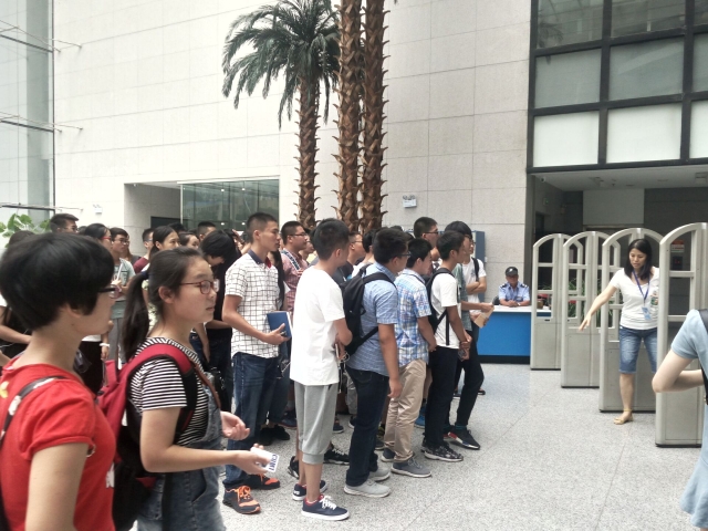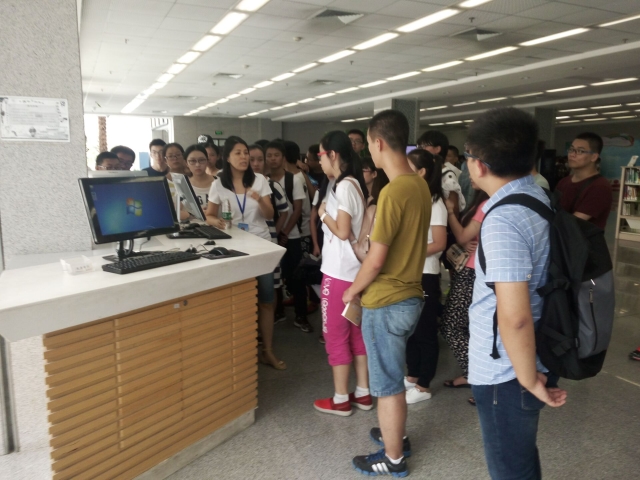 上午十时,新生在梅苑餐厅前集合,学生会成员组织各班站好队,清点好各班人数后,带领他们前往图书馆。在图书馆门口,图书馆讲解老师表达了对16级新生的欢迎。随后,每位老师带两个班级进入图书馆。讲解老师耐心地讲解了图书馆的内部设施,借还书的步骤,和图书馆的开馆时间及一些注意事项。同学们也显示出浓厚的兴趣,积极地向老师提问,老师一一地回答了问题,并鼓励同学们经常来图书馆看书学习。