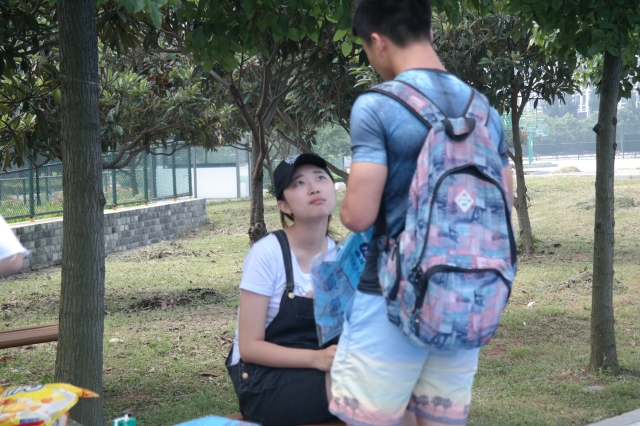 第三运动场,开始对第二天的拍摄进行初步的讨论和交流。第二天操场上的拍摄主要集中于人物对白以及肢体语言,较之第一天,剧组的同学们对于拍摄更加轻车熟路,虽然今天的台词以及拍摄的时间更多,更长但是剧组的同学们依然按照原计划于上午十一点完成了第三幕的拍摄。下午一点,剧组的同学们马不停蹄的来到了宿舍楼进行了第四幕的拍摄。第四幕的剧情主要针对于宿舍里面两位演员的对角戏,这对演员的演出能力有了高难度的挑战,然而两位出演的同学由于准备充分,台词熟练,对剧情拿捏到位,于当天下午下午五点半完成了宿舍摄影的全部内容。当天晚上,剧组人员更是对进一步的剧情以及当天出现的一些小问题进行了详细的讨论和分析,晚上九点,第二天的拍摄正式划上了句号。