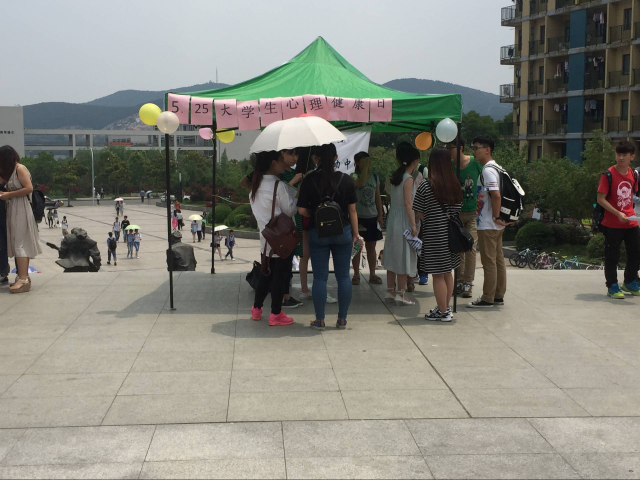 在于二食堂广场进行“5.25大学生心理健康日”户外宣传教育活动。