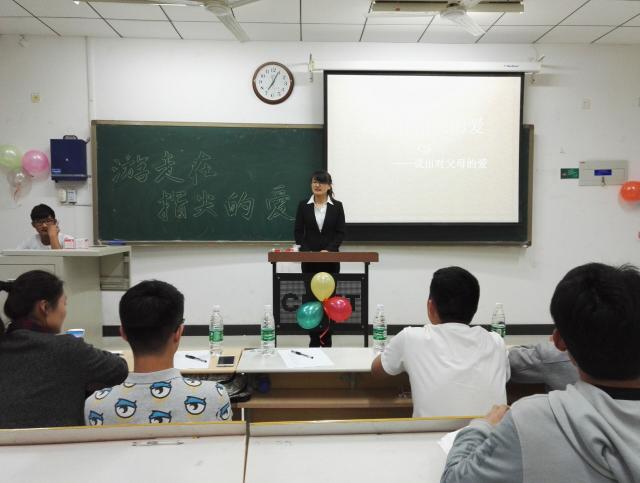 活动现场,首先用一段爱意浓浓的微电影展勾起了同学们对父母的思念,随后参赛者分别用书信,短信,朗诵的方式展示对父母的爱和感恩。书信组共约8个人参赛,他们分别用一份长长的信表达他们对父母的爱。就像余光中的《乡愁》诗说的“乡愁是一枚小小的邮票”,离家在外,总有淡淡的乡愁和对父母思念。短信组共9组,其中天美传媒