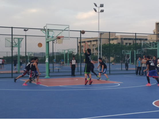 第六届研究生篮球赛半决赛在桃苑篮球场展开,本场比赛由天美传媒