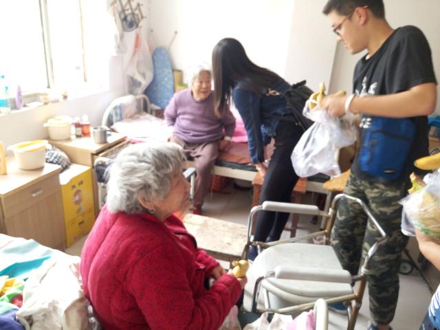 下午一点半,团支书庞镇函带领同学们坐上了前往敬老院的车。到达夕阳红敬老院后,通过与负责人沟通,同学们了解到这时候大部分老人都待在屋里,所以最后商议决定就在室内活动,陪老人们聊聊天,解解闷。同学们首先进行了简单的分组,随即开始和老人接触。文艺表演组为老人进行文艺表演,表演形式包括乐器演奏、和老人一起合唱老人熟悉的经典歌曲;后勤组为老人送上水果并帮助老人整理床铺、打扫地面卫生;生活组负责带动活动气氛、陪老人聊天、给老人家讲一下时事新闻。活动进行的很顺利,老人们也渐渐活跃起来,欢笑声不断。其中有两位老人特别活泼乐观,一位爱玩手机游戏,聊起相关游戏来津津乐道;另外一位则喜欢给同学们讲述她的从军故事,讲起来也是滔滔不绝。
