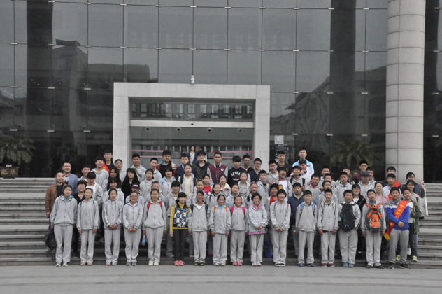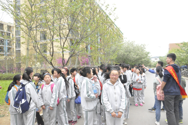青年志愿者学会志愿者从三食堂广场出发,前往桥上中学接待桥上中学师生前往矿大进行参观。