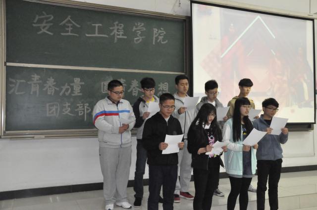 各团支部展示活动正式开始。主持人开场白结束后首先展示的是14-2班诗朗诵《我们不跪》,他们用铿锵的呐喊表达了青春的骄傲与不屈不挠。紧接着的是14-4班的朗诵——梁启超的《少年中国说》,他们传达的青春融入了责任与坚强。接下来的14-3班带来的朗诵与合唱让现场氛围变得温馨和睦。他们的展示强调了班级内的团结与共同担当。随后而来的是15-5班的朗诵与合唱展示激情洋溢,他们的青春关键词是超越,是超越自我、超越梦想。其中最引人入胜的莫过于15-4班的话剧《青春诺言》,他们将不同时代的年轻人的青春进行了对比,一种是满腔热血信守诺言,一种是随心所欲轻许诺言;一种是抗战时期,战友用30年的血与泪铸就了金石般的诺言,一种是随意应付他人的“诺言”。他们精彩传神的表演让笑点与泪点共存,赢得了场下阵阵掌声。随后15级消防1班和14级消防一班也展示了自己的节目。每个展示过后,孙婷老师都根据其优劣进行了短评与一定鼓励。在长达将近2小时的展示结束后,在场评委与各班团支书通过投票决定了15-4班与14-2班的风采展示更为出色,他们将代表天美传媒