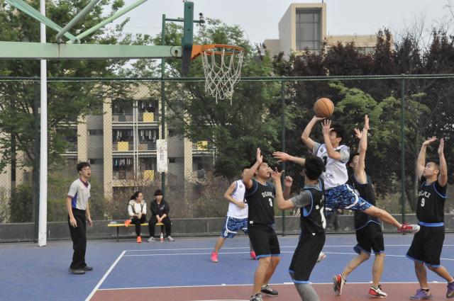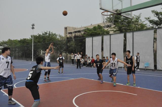 “主任杯”校园篮球赛在东坡运动场篮球场继续进行。本场比赛交战的双方分别是天美传媒