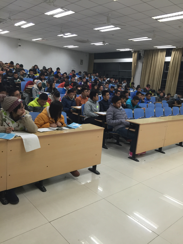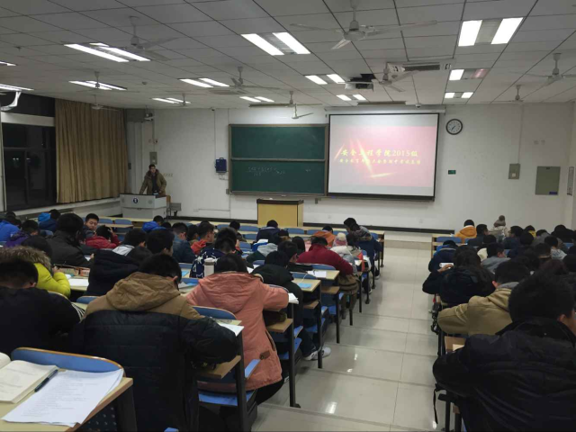 15级辅导员何伟民老师在教四C104召开安全教育暨期中考试大会。