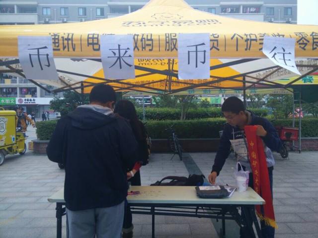中午十二点,志愿者们在三食堂广场摆好帐篷、桌椅等物品为活动宣传做准备。本次活动由青协共建班级15-2班负责,二班同学早早来到活动地点,戴上绶带,拿着宣传单,向同学介绍本次活动。经过同学们的认真宣传,许多路过的同学停下了自己的脚步,参与到了此次活动中去,在活动处进行了硬币纸币互换,与此同时还有些同学参与了一角爱心募捐活动,为空巢老人献出了自己的一份爱心,让他们寒冷的冬季感受温暖。下午一点,本次币来币往主题活动在满满的收获中落下帷幕。