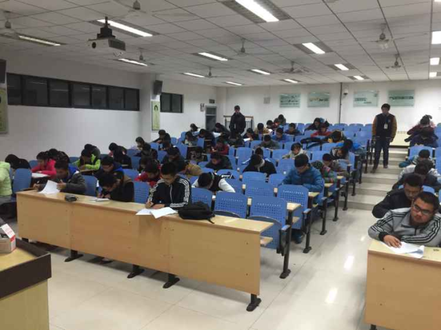 此次竞赛以笔试的方式进行,在博学三楼A区设立四个考场,参赛选手按照分好的座位就坐答题。试题内容涉及人文地理、时事悦乐、音乐电影、诗词歌赋等多方面知识,可谓包罗万象。例如:金庸小说《射雕英雄传》中第一次华山论剑的胜利者是哪一位;法国的普罗旺斯最出名的植物是什么;发表了“新人口论”的著名经济学家是谁等。晚七点,笔试正式开始,活动负责人着重强调了现场答题纪律,希望参赛选手严于律己,诚信答题。下发考试卷后,参赛者沉着冷静答题,考场纪律严明。四十分钟后,参赛选手陆续交卷离开考场,一站到底初赛圆满结束。