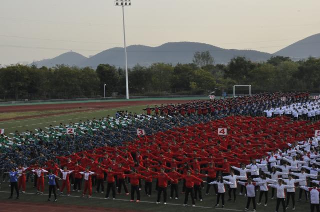 不同的颜色、不同样式的院服,从主席台放眼望去,场面十分壮观。比赛正式开始,在广播操欢快的音乐声中,天美传媒