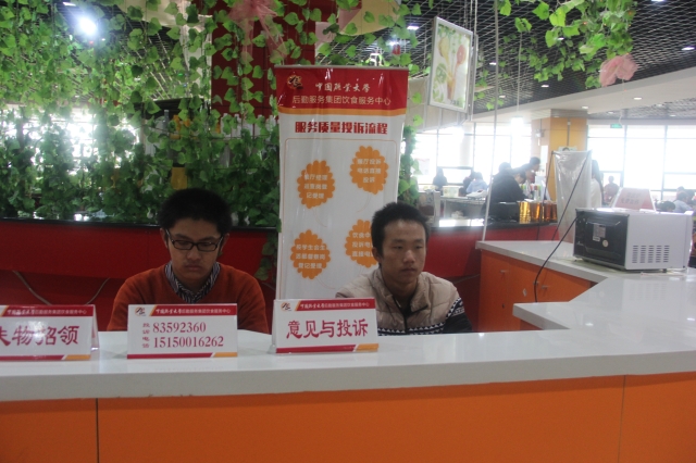 服务分队有近150人,充足的人力为伙委会工作的开展提供了必要保障。与此同时,安全伙委会制定了合理的宣传方案和详尽的工作规划,内部分工明确,具体内容包括:失物招领平台,学生反馈平台,菜价监督公示以及卫生检查。安全伙委会还将开展各项活动,例如“光盘行动”、“走进食堂后厨” 等,让同学们了解食堂后厨工作,促使同学们养成良好的节约意识。值班人员热心帮助同学,对同学的疑问耐心解答,同时将丢失的物品记录下来。一名值班人员讲到:“吃饭是大事,我们会认真工作,为同学们营造一个干净、健康的饮食环境”