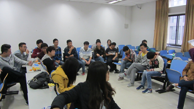 据悉,在班会活动开始之前,班委们精心准备,从设计活动环节到布置场地,无一不尽心尽力,并邀请到辅导员老师参与其中。下午4时,主题班会开始。首先,班长何鑫对此次班会进行发言:“班级是我们共同的家,我们应该珍惜大学相聚四年的时光。”随后,大家围在一起,对一年以来的学习生活历程,回忆长谈,畅所欲言,现场在暖暖温馨的交流问候中一片和谐惬意。接着,在班委组织下,开展了 “猜拳画鼻子”、“你说我猜”、“火车开了”等的游戏活动,其中同学们热情高涨,积极参与,彼此合作,教室里洋溢着同学们的欢声笑语。最后,班级同学合影留恋,活动结束。