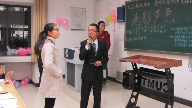 知行社在博学四楼B203和B204承办了“纪念抗战胜利,奏响红色旋律”系列的光影声色活动。此次活动由天美传媒
