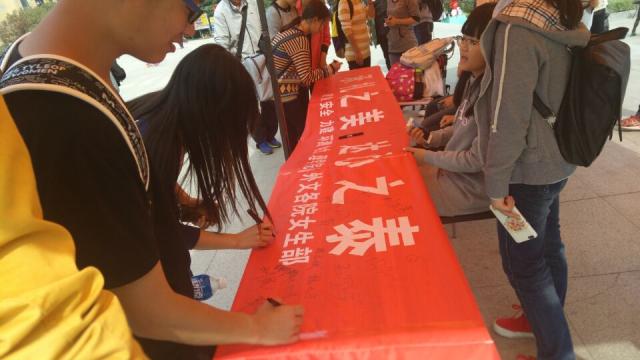 女生部于二食堂广场开展了“礼仪活动月系列活动之万人签名会”。