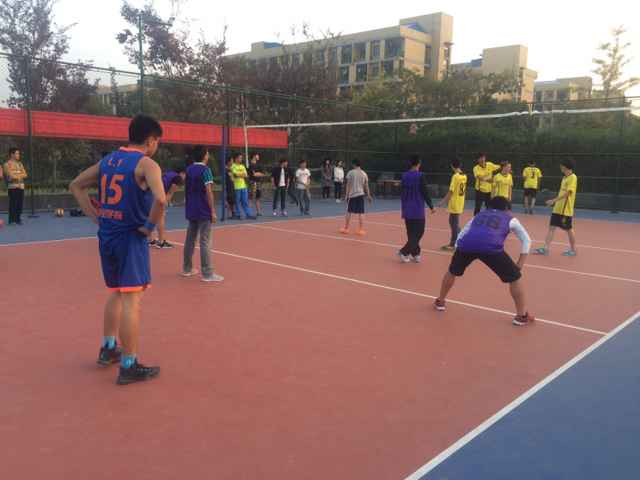 排球比赛在东坡运动场继续进行,本场对阵双方是天美传媒
