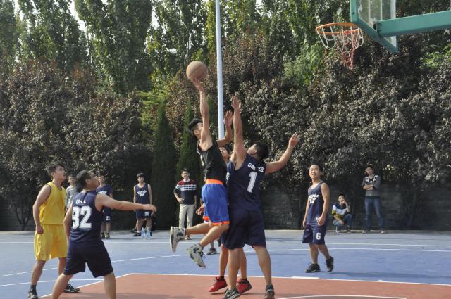 开幕式活动结束后,所有参赛队伍集体合影,拉开了本次篮球赛的序幕。首个比赛日共有王德明队、程远平队、王恩元刘贞堂联队、朱国庆队、李增华队、林伯泉1队和林伯泉2队八支不同导师的实验室队伍参赛。比赛开始的哨声吹响,八支队伍在四块场地上便打得火热。赛场上,各团队奋力拼搏,不甘示弱,一幕幕精彩绝伦地三步上篮和三分远投连续上演,场边的啦啦队同学们一阵阵加油呐喊声此起彼伏,不断地将比赛气氛推向高潮。激情的碰撞和高超的球技把研究生斗志昂扬的青春风采展现的淋漓尽致。经过全场40分钟激烈地角逐,最终林伯泉1队战胜王恩元刘贞堂联队,林伯泉2队不敌程远平队,朱国庆队险胜王德明队,李增华队战胜了周福宝队。各参赛团队将参加下一轮小组循环赛。