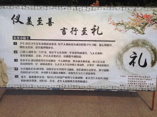 学生会女生部于二食堂广场举行主题为仪美至善,言行至礼的校园礼仪文化月开幕仪式。