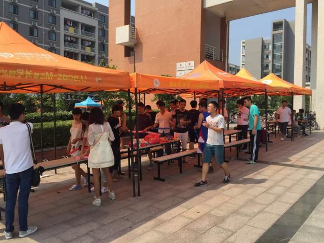 团委学生会在梅苑餐厅旁小广场积极部署迎新准备工作。团委学生会各成员在主席团崔捷等人的带领下有序开展相关事项,为15级新生的到来做最后的准备。