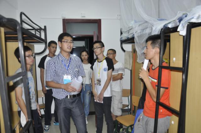 辅导员何伟民、吴张蔚带领团委学生会主席团前往15级新生宿舍进行拜访。