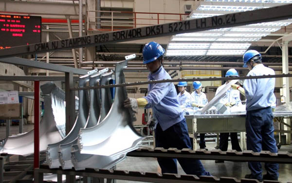 实践团成员们走进中国长安汽车集团的生产车间后,首先感受的便是震撼。偌大的车间内摆满了各种各样的大型设备,设备的运行紧致有序,机械化、自动化式的生产方式体现出生产线上的安全系数之高。