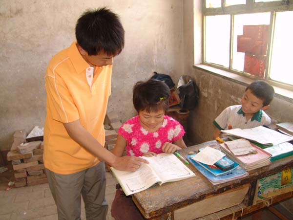 暑期实践团队——“141”展翅微笑志愿队,在白石台小学正式开展文化课程教育。
