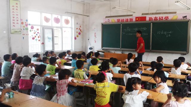 ,实践团的成员开始尝试与同学们接触,拉近彼此间的距离。上午8点整,实践团成员分为5组,每两个人带领一个年级,充当老师进行团体辅导。这期间,他们引导同学们进行 “桃花朵朵开”“海底捞月”等一系列团体游戏,操场上笑声连连,各位老师与同学们也渐渐地熟悉了起来。之后,老师们带领同学回到教室,并给他们放映了几部励志的动画片。在结束后,他们互相交流,分享心得,使得每个人都有了很深的感触与体会。下午3点整,同学们开始正式上课。老师为同学们准备了绘画,趣味英语,趣味数学等课程。课堂上,不仅同学们积极发言,老师们也努力营造良好的氛围,使同学们在学习的同时也收获到了快乐。