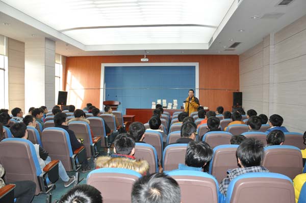 仪式刚开始,孙留涛老师为参与活动的学生讲述本次活动的意义。对于理工科的学生而言,提升自身综合素质,增加人文底蕴,做到文理平衡,适当涉及一些人文社科类书籍是十分有必要的。本次活动的展开,既能丰富同学们的课余生活,也希望能发掘同学们对阅读书籍产生兴趣的可能性。发言中,孙留涛老师结合自己的生活经验,给同学们讲述了读一本好书能带给青年人的启发和指导,也表示了对同学们的深切关心和期望。在孙老师发言完毕后,辅导员郑文奇和各班代表一起给同学们分发书籍,同学们一一上前领书。在同学们读完自己的书后,这些书籍将在天美传媒