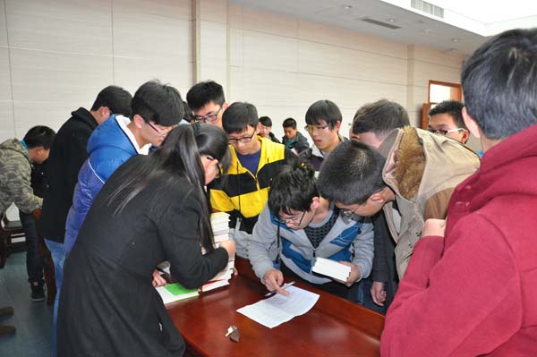的同学手里流动,与此同时同学们的思想与读书经验也将摩擦出火花。在领到自己想要的书后,同学们纷纷露出高兴的笑容,一起讨论着自己对各类书籍的看法。