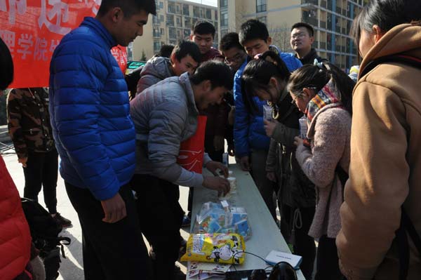 活动总体分为“人在�途”、“写谦语送祝福”和“齐心协力”三个模块,让同学们真正能够在活动中全方位了解自我,在把握自我定位的同时抓住机会,提高自己的交际能力。“人在�途”、“写谦语送祝福”这两环节要求同学们在标签上写下自己与人相处过程中的�事、歉语和祝福并贴在展板上进行现场展示。此环节深得同学们的喜爱,大家纷纷拿起笔写下自己的所思所想。在“齐心协力”这一环节中,主办方为同学们提供了两个非常有趣的小游戏。其中“你比我猜”吸引了大批同学的参与。幽默滑稽的表演,天马行空的猜测不时将现场的同学逗得捧腹大笑。同学们在团结合作中收获了快乐,并提高了自己的沟通交际能力。