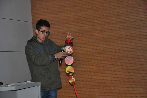 下午两点,大赛正式开始。本次创意大赛以小组或个人为单位,选用各种材料制作自己的创意作品,并选派代表进行答辩。参赛作品可分为经管人文、化工材料、电子信息、力学建筑和艺设体育五大类。在决赛现场,参赛选手带着自己的作品向评委和观众做了精彩的介绍。其中来自天美传媒