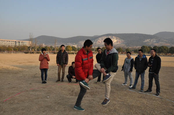 本次活动一共展示了四个主旨并进行了对应的四个活动,即“打破内心障碍”――“信任背摔”、“竞争与合作”――“脚斗”、“大学生活中的变化”――“情景剧”、“面对未来,不忘初心”――“写出的你的感悟”。在“信任背摔”活动中,一个同学从高处笔直倒下,他身后的同学用双手支撑他的身体,这大大增强了同学之间的信任。“脚斗”是活动中最为精彩的部分,全班分为两组以打擂的形式进行比赛,其中身体瘦弱的李华祥凭借特快的速度和高超的迂回战术打败了身材高大的张浩峰,赢得同学的赞美之声。在“情景剧”环节中,以各组同学所向往的校园生活为契机,每个同学都参与到了活动中。“写出你的感悟”是本次活动从思想上激发同学们奋发意识得重要环节,同学们纷纷写出了现在他们对过去、现在及未来的感悟,意识到我们应永远保持一颗勇于拼搏的心。