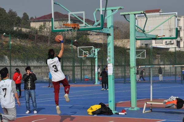 12点40分,四场比赛同时打响。在5号场地上,消防12-1班在争得球权之后,迅速组织进攻,率先取得了比赛的优势。而另一边,安全14-1班配合默契,利用新生的优势积极拼抢,在第一节中领先于安全12-1班。安全14-4班与消防13-1班的比赛则显得异常焦灼,双方都以防守见长,比分更是交替上升。随着时间的推移,比赛的热度进一步升高。安全13-2班以巨大的比分优势拿下了第三节的比赛。安全14-1班与安全12-1班的比赛则发生了大逆转,后者后来居上,掌控了比赛的节奏,并在比分上取得领先。而消防13-1班则愈打愈猛,用接连的进攻冲破了安全14-4班的坚固防守。消防12-1班凭借3号和7号球员的默契配合,将领先一直保持到比赛结束。13点40分许,四个场地相继结束了比赛。最终安全13-2班以58:27领先安全12-3班,安全14-1班以25:39落后安全12-1班,安全14-4班以20:33惜败消防13-1班,安全14-5班以21:61