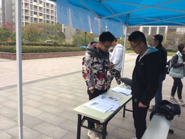 的志愿者们来到三食堂广场,布置好募捐的站点。接着志愿者们拿着宣传单向过往的行人们详细的介绍了这位同学的情况,并鼓励他们为朱同学献出一份爱心。行人们都表示愿意献出自己的一份爱心,积极进行捐款。本次捐款除了现金支付之外,还可以通过支付宝扫码捐款。捐款完毕后,他们写下了对这位同学的寄语,大家都希望学长加油,渡过难关。