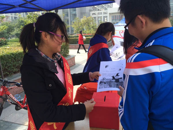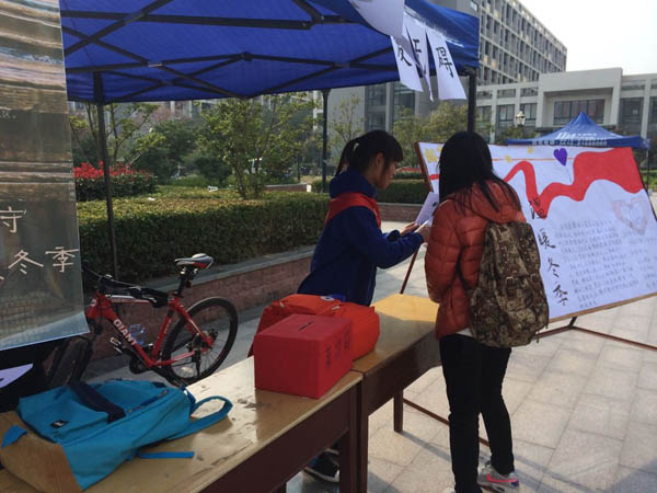 的13级的同学李鉴钢,他身上并没有带现金,但是出于自己的一片爱心,他立马跨上自行车,返回寝室,捐献出了自己准备好的善款,并对活动的开展提出了不少宝贵的建议。在这之后,又有不少同学陆续捐出自己的善款。