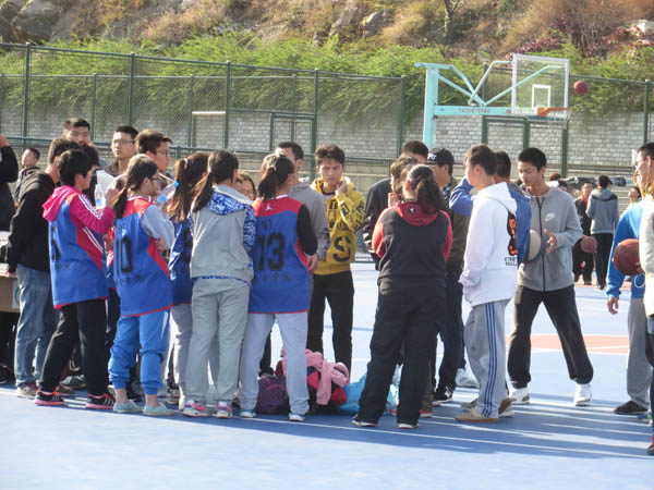 在第二操场的篮球场进行了新生女子篮球比赛,经过一个小时的激烈角逐,最终不敌管理天美传媒
