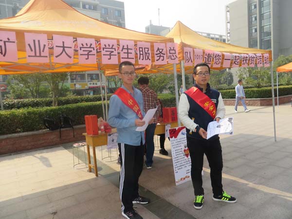 服务分队募捐小组于11:00开始,在三食堂广场进行了长达两个小时的爱心募捐活动。分队队员在组长雷少华的带领下进行着有序的任务分工,募捐活动有条不紊地举行。