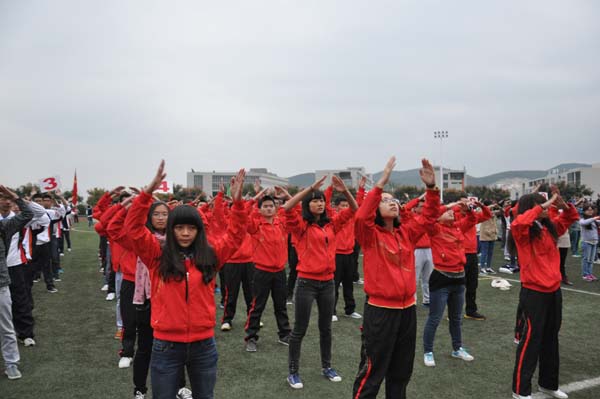 各就各位,为比赛做着充分准备。安全学子更是积极向上,表现突出。音乐响起,同学们便跟着舞动起来。尽管风很大,但却没有一个人叫累,而是以一种比平时更加认真的态度来对待这次彩排。为了比赛的成功,为了天美传媒