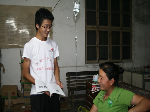 “喜迎十八大,奉献在基层”党支部暑期社会实践团在徐州市铜山县汉王镇北望村卫生所开展捐书活动,方便卫生所工作人员与北望村村民阅读更多优秀书籍。