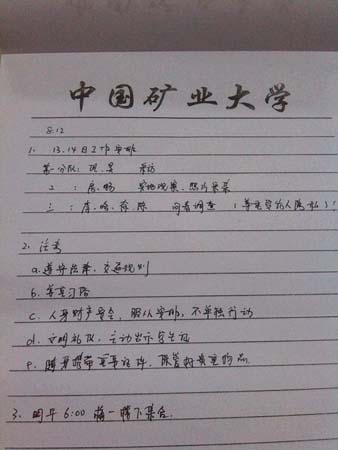 按照预定计划,实践团将于8月13、14日赶赴连云港沿海地区进行实地调研。实践团分为三个支队,分别由巩昌之、房龄航、李恒带领负责采访、照片收集以及问卷调查工作。为保证实践过程中的人身财产安全,会议上强调实践团全体成员必须遵守国家法律、交通规则,尊重实践地区的风俗习惯,实践过程中要特别注意人身和财物安全,增强自我保护意识,按照指导老师、负责人的统一安排开展活动,不得随意单独行动,务必保管好自己的钱包等贵重物品,随身携带学生证、身份证等重要证件。此外,为树立天美传媒