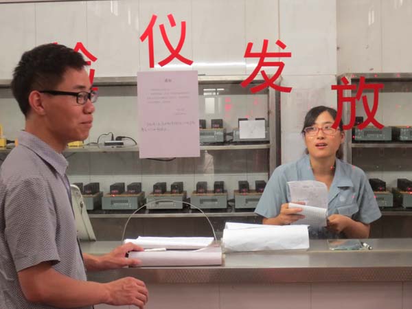 “矿山安全行”实践团随相关负责人员来到煤矿对面的澡堂,我们了解到原来矿井旁边是澡堂,这样才方便煤矿工人工作完之后洗澡。在澡堂,一位老伯伯帮他们穿上了橘红色的安全服,那时他们才知道原来下井前要脱得一丝不挂,不允许穿着一件属于他们自己的衣服下井,工作服由矿上提供,老伯伯笑着跟团队成员们说,说他们太瘦了,这衣服穿着不合身。他们跟随者矿上负责人来到了矿井口,在那里,他们进行了信息登记,并记录下井人员的姓名、身份以及下井时间。由于该矿井属于瓦斯矿,为防止瓦斯爆炸,一切电子设备,如手机、相机、甚至是电子手表等任何有可能产生电火花的设备仪器,均不可带入矿井,我好奇的问了一下负责人,不让带相机,那些井下照片怎么得到的,负责人告诉队员们需要专门的防爆相机,才可以在井下拍照,晚上他们才知道原来一台防爆相机需要2万多块钱。值班人员对我们进行最后的全身检查,把好最后一道关,确保队员随身未携带任何危险品。他们不禁感叹道:这也是北皂煤矿严格执行安全生产管理条例的一个缩影吧。