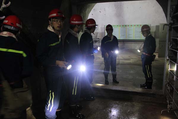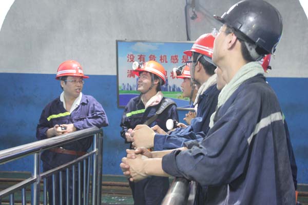 在为期三天的井下活动中,实践团在曹国华总工程师的带领下,先后参观井底车场、运输大巷、避难硐室、采掘工作面场所,全面展开调研活动。曹国华总工程师详细介绍了矿区的瓦斯涌出与治理情况。矿区坚持“预防为主,防治结合,综合治理”的原则,在不同场所、不同性质条件下,有针对性地采取不同措施,严格控制瓦斯灾害。通过保护层开采与预抽煤层瓦斯,从源头上消灭瓦斯危险。而建立井下瓦斯抽采系统,则能在实际生产中排除瓦斯灾害发生的可能性。在参观避难硐室时,曹国华总工指出,矿区高度重视井下的应急救援工作。硐室内配备充足的食物和洁净的饮用水,并能获取新鲜的氧气,在发生灾难时,作为坚固的后盾,切实保障井下工作人员的生命安全。接下来,曹国华总工带领实践团陆续参观了采煤机、输送机等机械设备,经过曲折蜿蜒的巷道、顺槽,参观井下监测监控、压风自救、通信联络等系统,充分了解矿区应急救援情况。在剩余的时间里,实践团与井下职工展开广泛的交流,了解到井下工作的落实情况与具体技术困难。完成升井后,针对具体问题,实践团组织讨论,提出技术创新措施,并与矿区相关人员做交流。